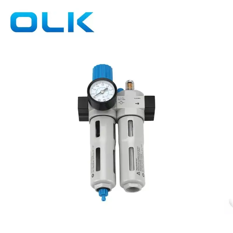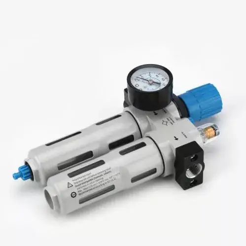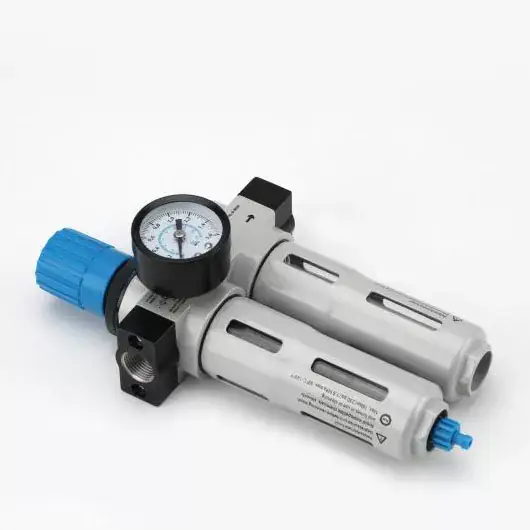 واحد سه گانه نوع FRC از یک رگولاتور فیلتر نوع LFR و یک روان کننده نوع LOE تشکیل شده است که می توان آنها را به طور جداگانه سفارش داد. جداکننده آب می تواند روغن مایع، میعانات و ناخالصی های موجود در هوا را فیلتر کند. برای کاربردهای خاص، کارتریج فیلتر 5μm را می توان به راحتی با کارتریج فیلتر استاندارد 40μm جایگزین کرد. حتی با وجود نوسانات در فشار ورودی و مصرف هوای فشرده، تنظیم کننده فشار می تواند از ثابت ماندن فشار کاری تنظیم شده اطمینان حاصل کند. روان کننده می تواند به طور یکنواخت غبار روغن را به هوای فیلتر شده اسپری کند، با حجم غبار روغن متناسب با سرعت جریان هوا. می تواند به طور مداوم بدون توقف هوا روغن اضافه کند و با تنظیم پیچ مقدار روغن چکه را تنظیم کند. به طور معمول، 1-12 قطره در هر 1000 لیتر هوا کافی است.
