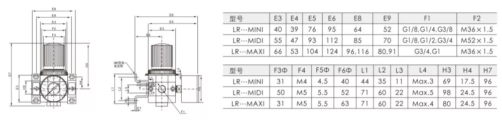 MINI/MIDI: نوع دیافراگم فشار Regulatormaxi: تنظیم کننده فشار نوع پیستون