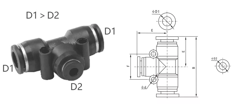 سری PEG یک اتصالات اتحادیه TEE کاهش دهنده است ، با D1 بزرگتر از D2 ، برای اتصال لوله های اصلی و شاخه ای از قطرهای مختلف طراحی شده است. اتصالات اتحادیه Tee Tee Tee Tee با یک سوراخ نصب کوچک برای نصب آسان و ایمن روی تجهیزات یا پانل ها ، صرفه جویی در فضای نصب همراه است.