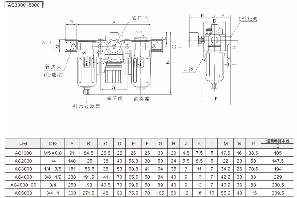 AC2000-5000: 0.05-0.085 Mpa (0.51-8.7 kgf/cm³)