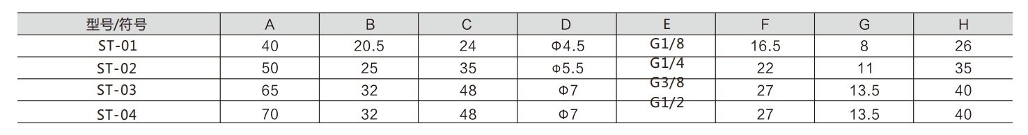 اگر اتصالات لوله هوا به درستی انتخاب نشده باشد ، باعث می شود هوا یا اگزوز در درگاه بسیار ناچیز باشد ، ممکن است هسته دریچه به طور کامل تغییر نکند و منجر به اتصال همه درگاه ها شود. این باید از این امر جلوگیری شود. ST-01: G1/8 ؛ ST-02: G1/4 ؛ ST-03: G3/8 ؛ ST-04: G1/2