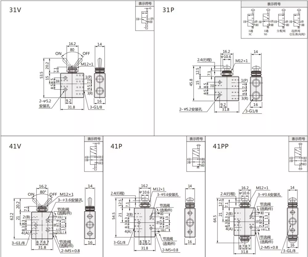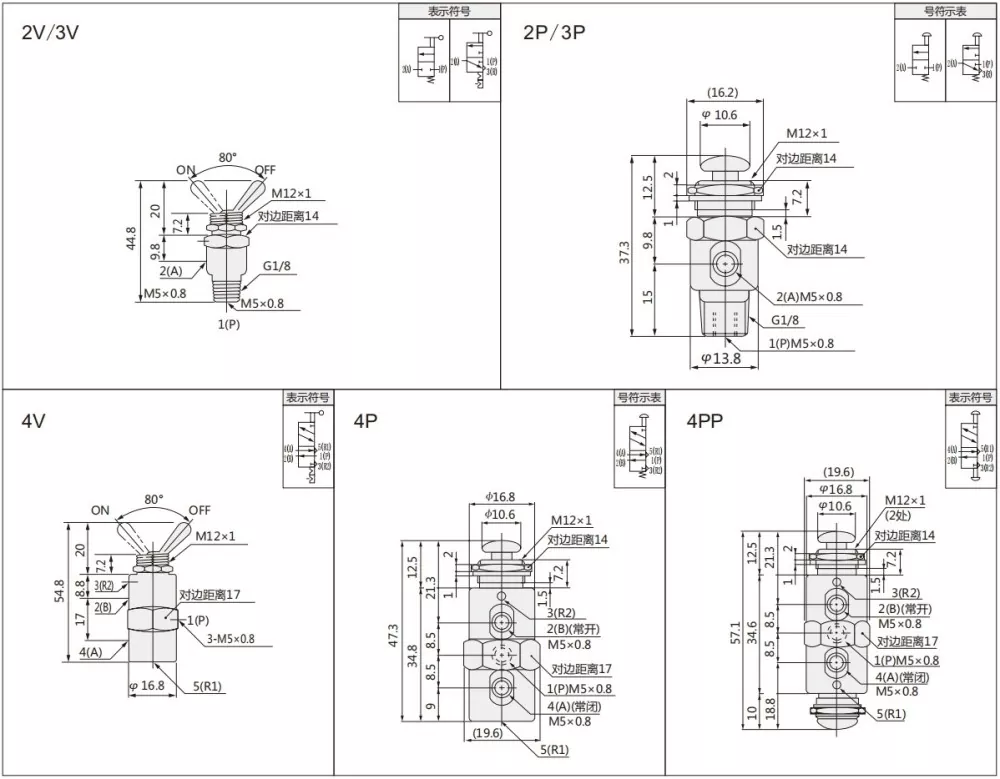 دریچه TAC Series Toggle دارای 2 موقعیت 2 راه ، 2 موقعیت 3 راه و 2 موقعیت 5 است که می توان انتخاب کرد. انواع مختلف از نوع اهرم و دو نوع موضوع: M5 ، G1/8.